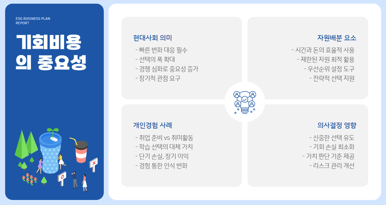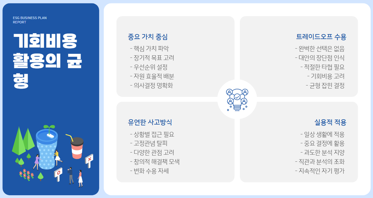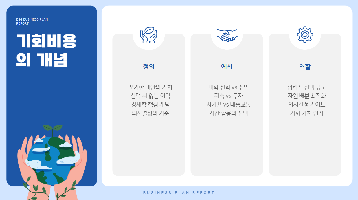 이는 선택을 할 때 포기하게 되는 다른 가능성의 가치를 의미하며, 의사결정의 핵심 원리로 꼽힙니다.