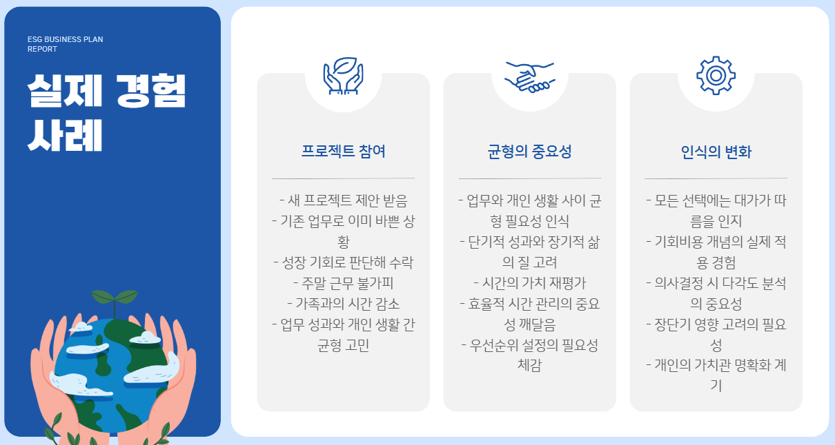 뒤늦게 “내가 얻을 수 있는 업무적 성취와, 놓쳐버린 소소한 행복 중 어느 쪽이 더 가치가 컸을까?”를 고민하게 되었지요.