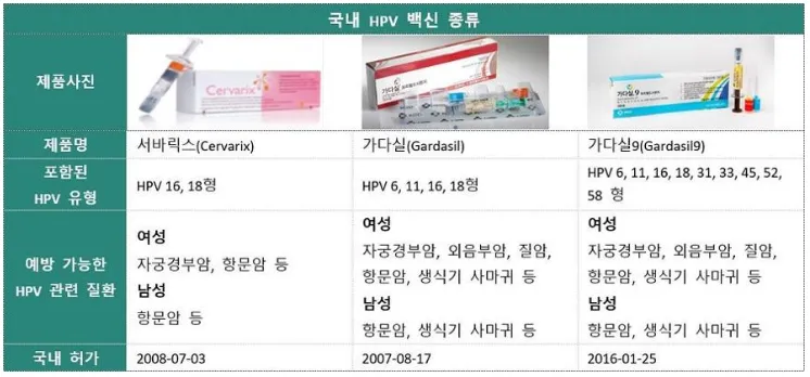 | 6, 11번 | 생식기 사마귀 (곤지름) | 90% 이상 예방 |