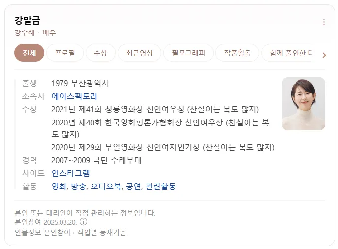 강말금 배우는 독립영화와 드라마에서 섬세한 연기로 인정받아왔으며, ‘찬실이는 복도 많지’로 신인상을 받으며 본격적으로 대중에게 알려졌습니다.