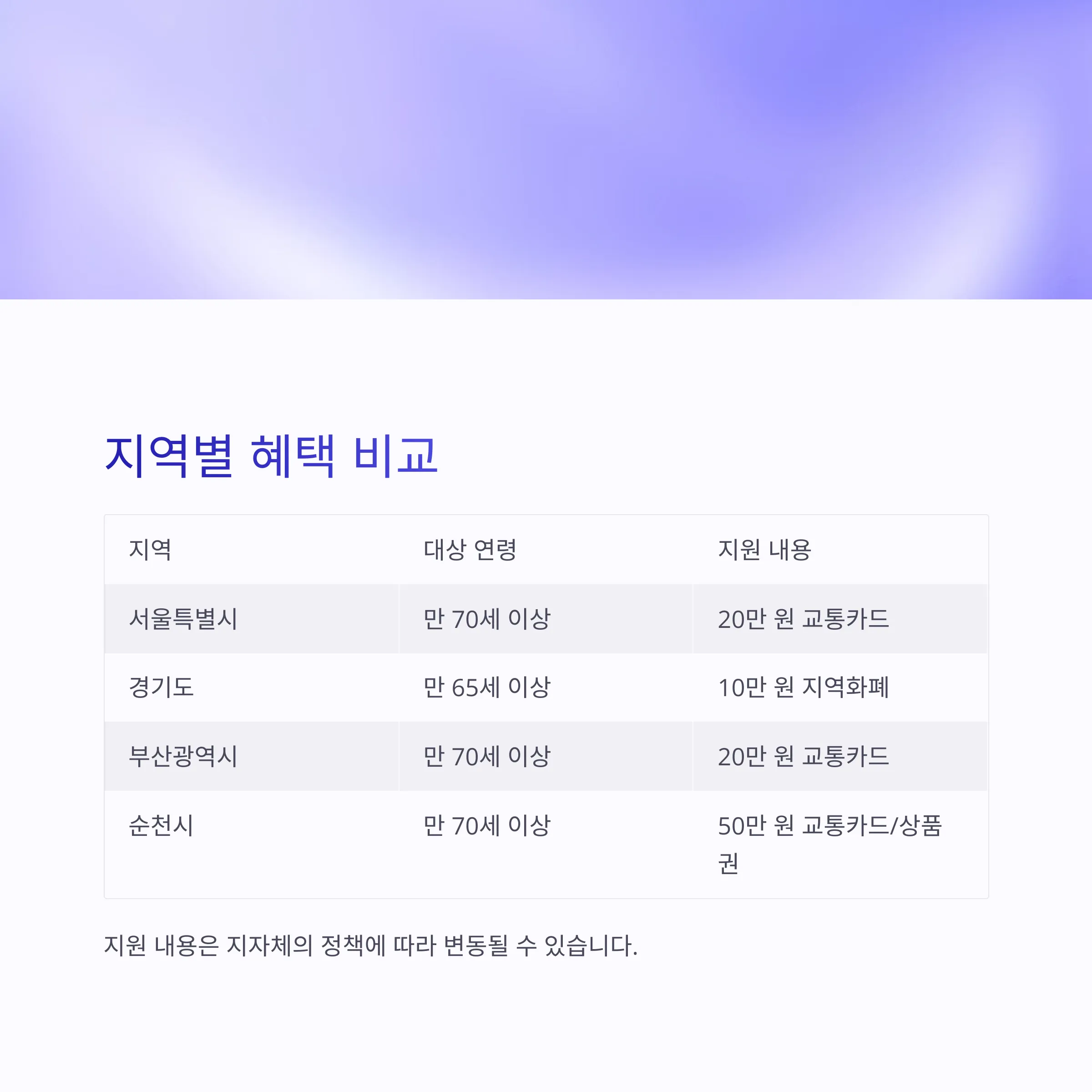 | 경기도 | 만 65세 이상 | 10만 원 상당 지역화폐 지급 | 지자체별 상이 |