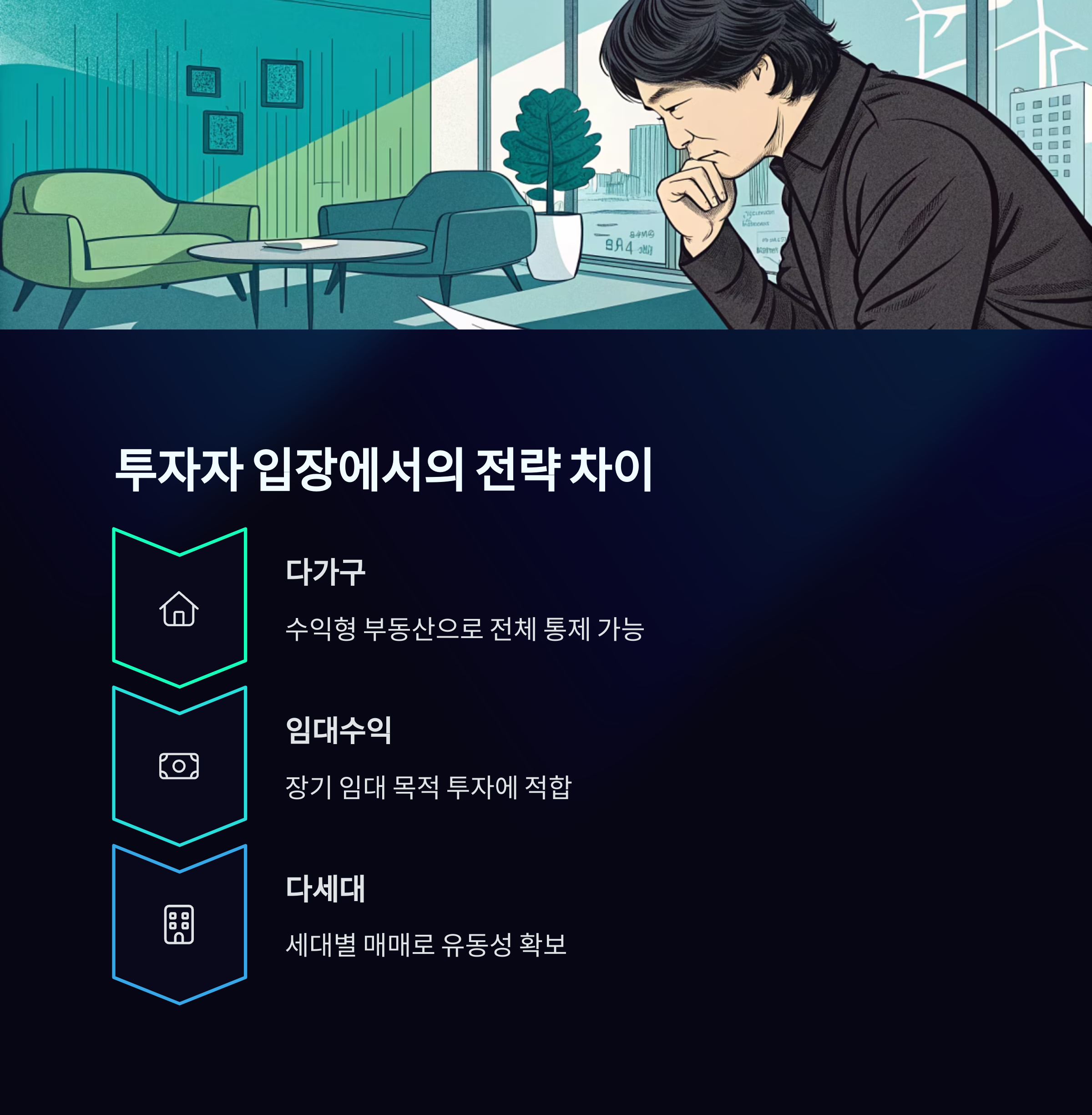"다가구는 장기 임대, 다세대는 분양 목적 투자에 적합합니다."