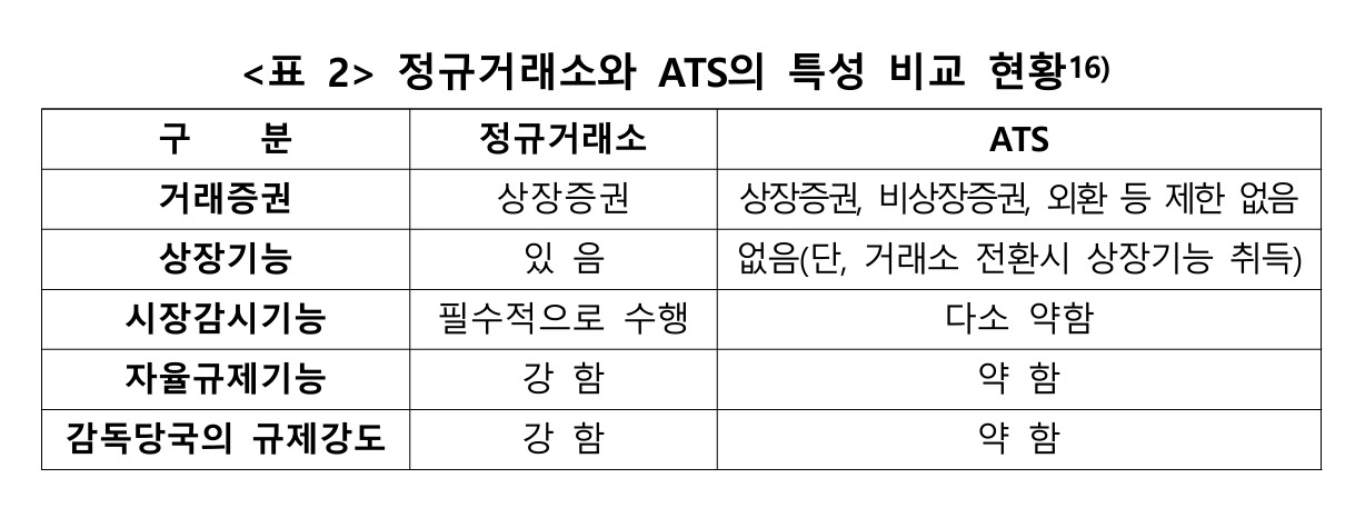 A: ATS는 더 빠르고 수수료가 낮지만, 규제 측면에서 전통 거래소보다 완화된 특징이 있습니다.
