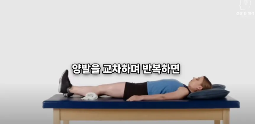 의자에 앉거나 누운 상태에서 발끝을 들었다 내리는 동작을 15회 반복하세요. 하루 여러 번 반복해 주면 효과적입니다.