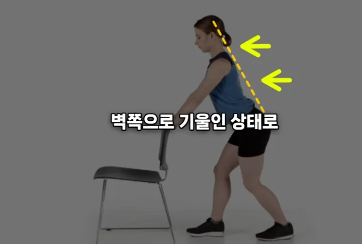 1. 벽에서 손바닥 하나 정도 떨어진 곳에 발끝을 둡니다.