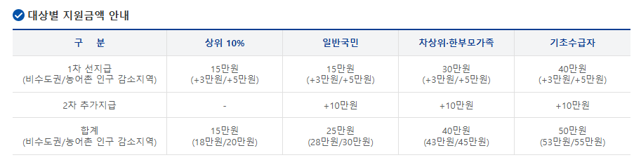 | 농어촌 인구감소지역 주민(추가) | 5만 원 추가 지급 |