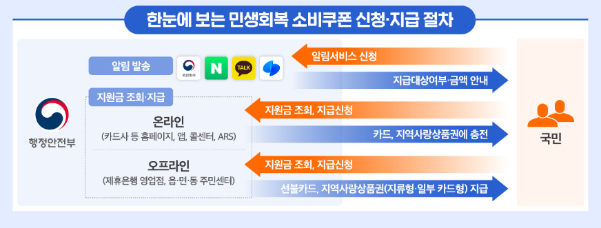 | 오프라인 신청 | 선불카드, 지류형 상품권 → 읍면동 주민센터에서 개인 또는 대리인 신청 가능 |