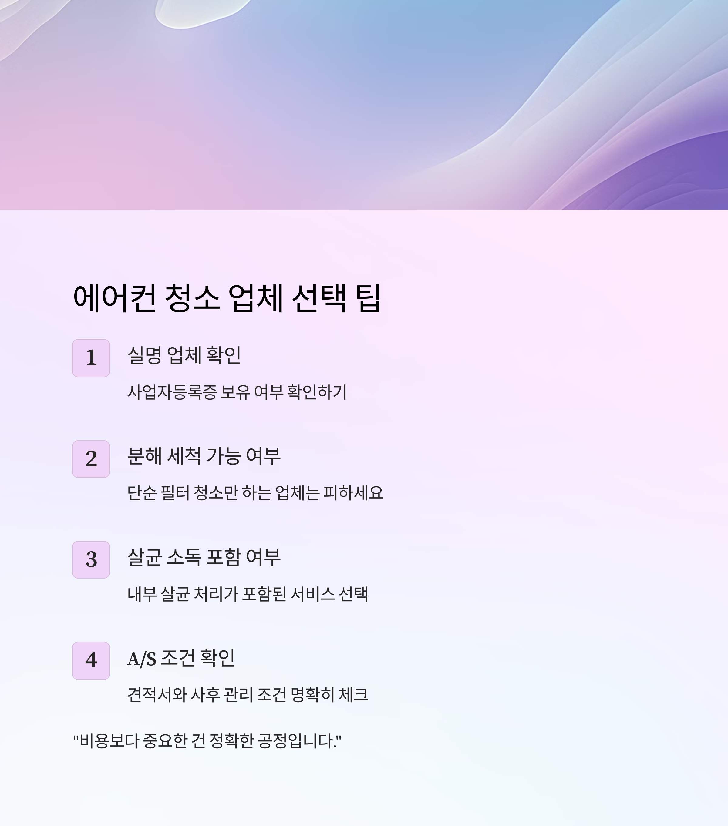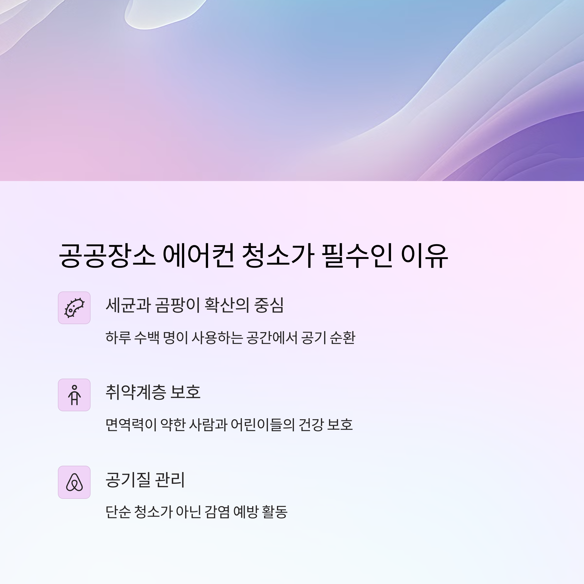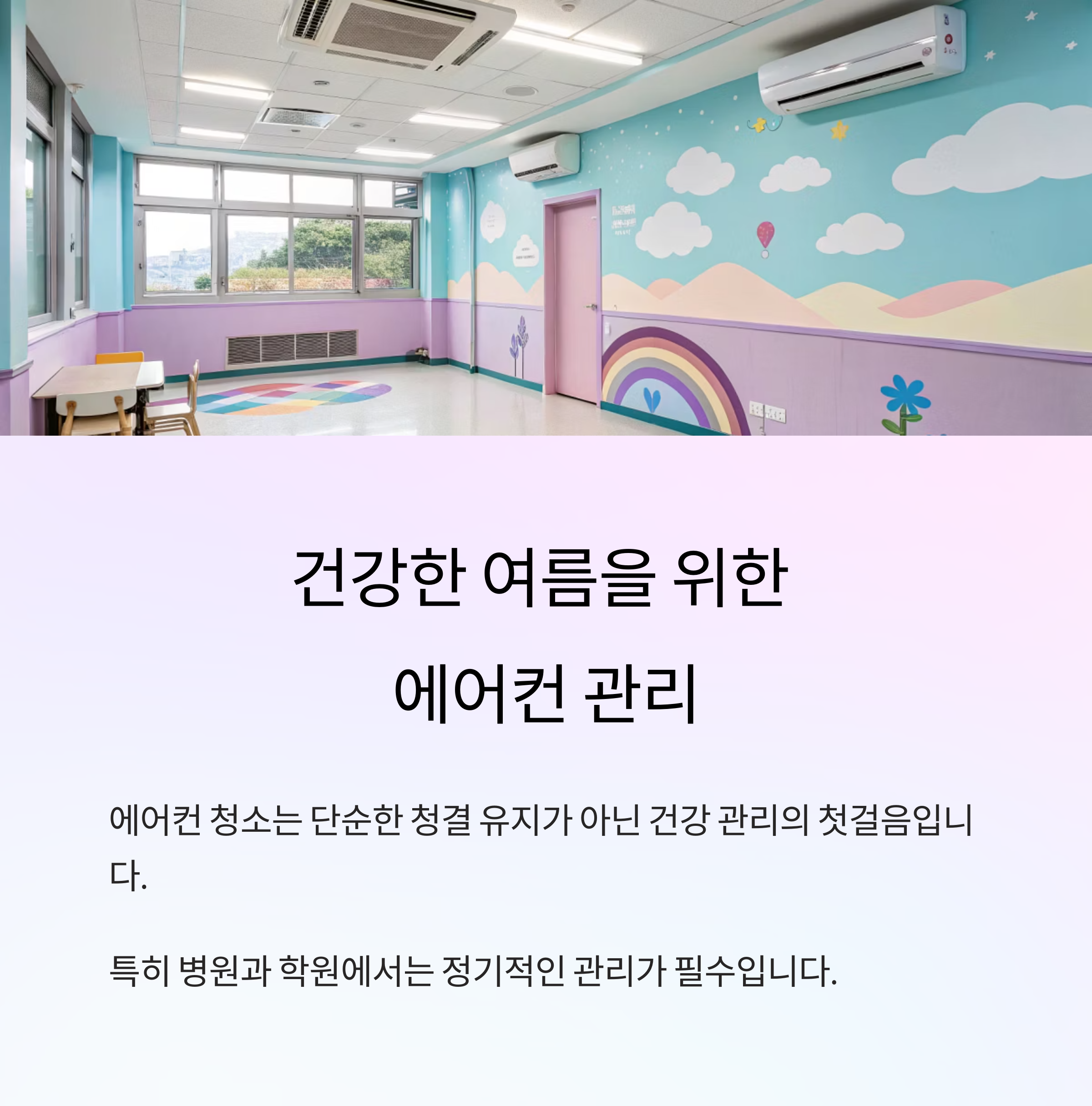 "에어컨 청소는 단순한 청소가 아니라, 공기질 관리이자 감염 예방입니다."