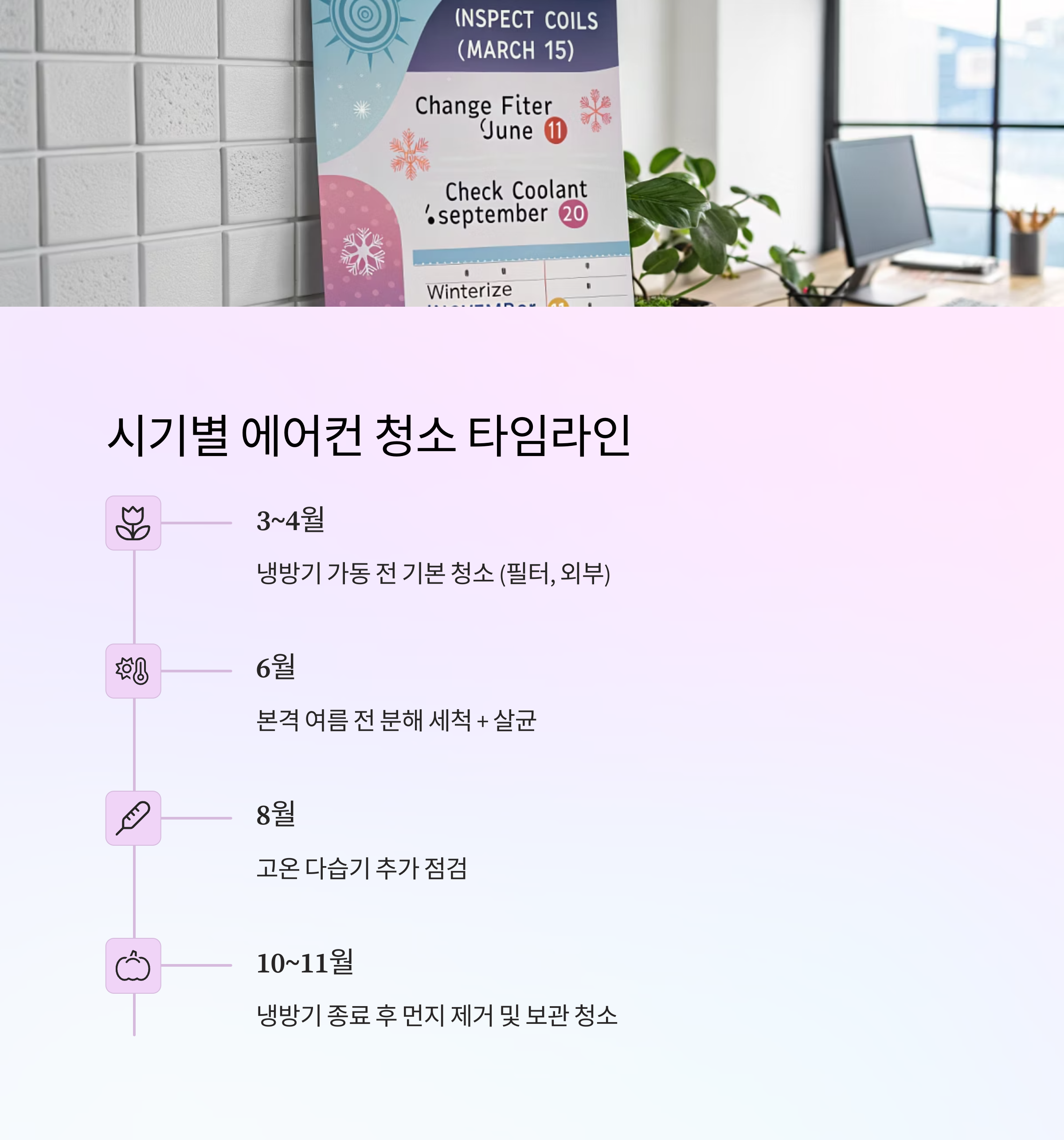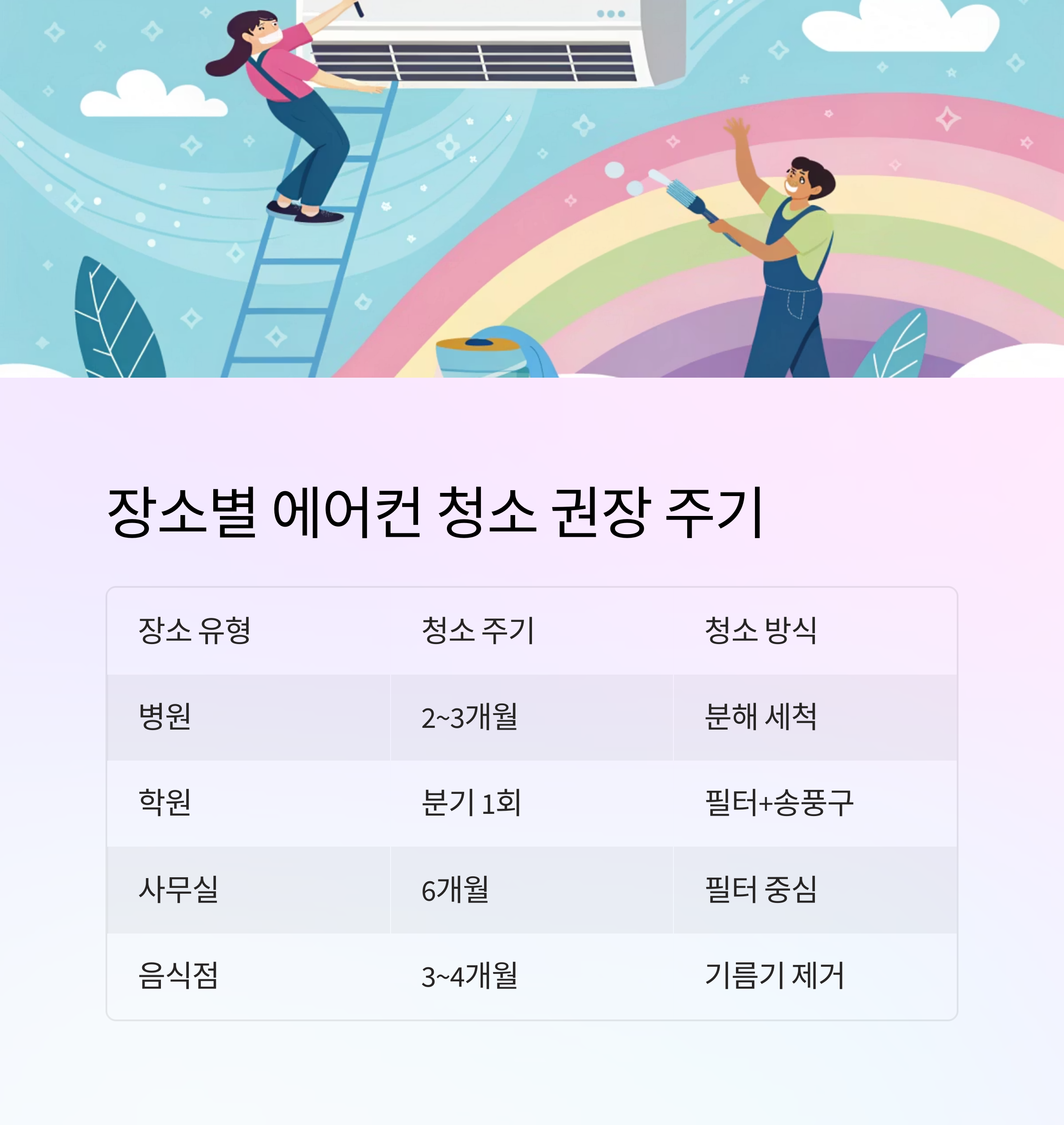 | 사무실 | 6개월마다 | 필터 중심 청소 | 정기 환기 필수 |