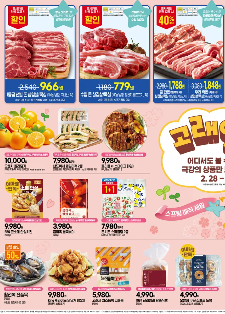 | 수입산 삼겹살 | 100g당 779원 | 카드사별 추가 할인 가능 |