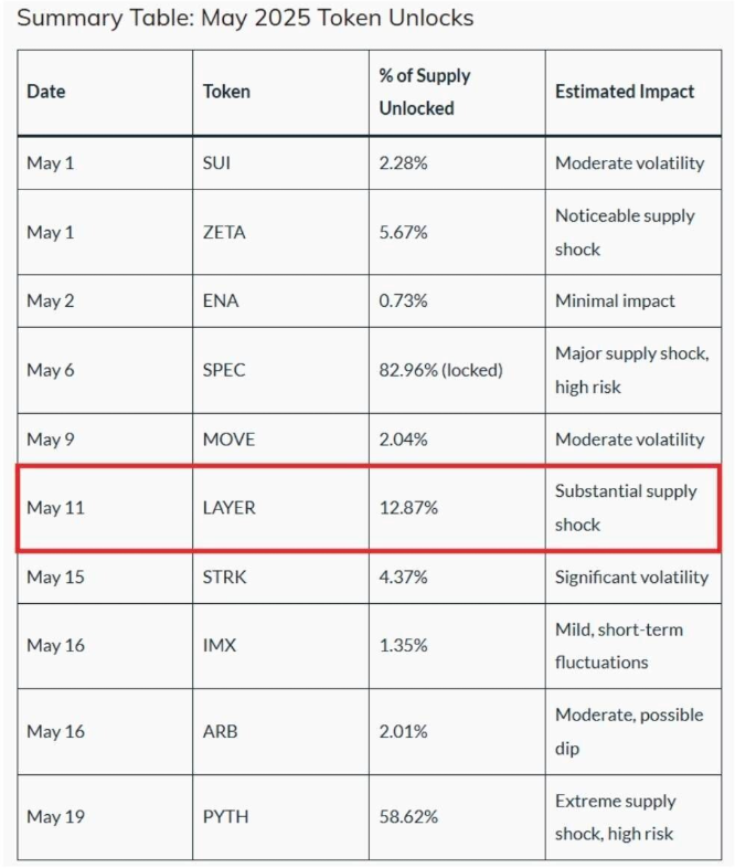 주목할 점은 5월 11일에 예정된 대규모 락업 해제로, 약 2,702만 개의 토큰이 유통될 예정이며 이는 전체 유통량의 약 12.87%입니다.