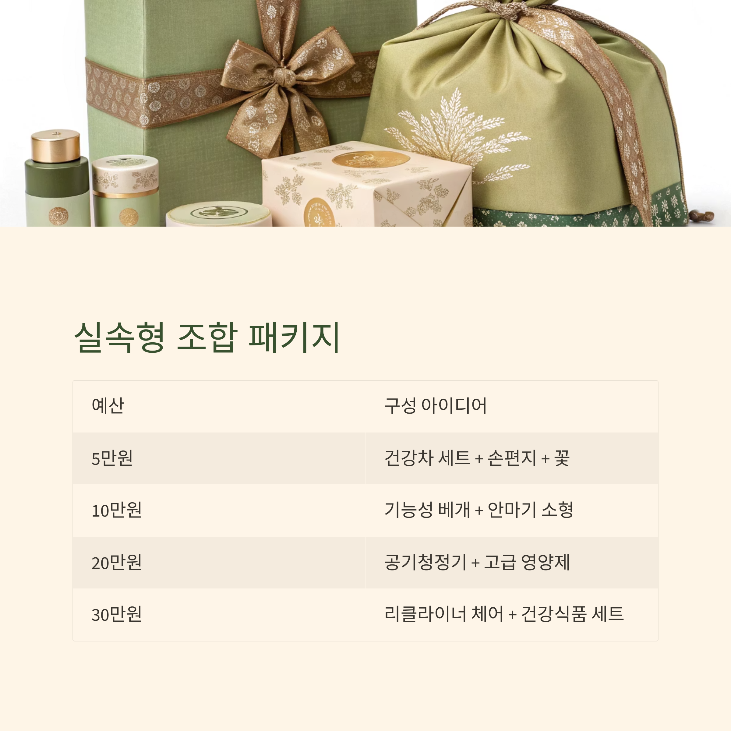 핵심 제안: "여러 개 조합해 정성과 실용성을 균형 있게 구성하세요."