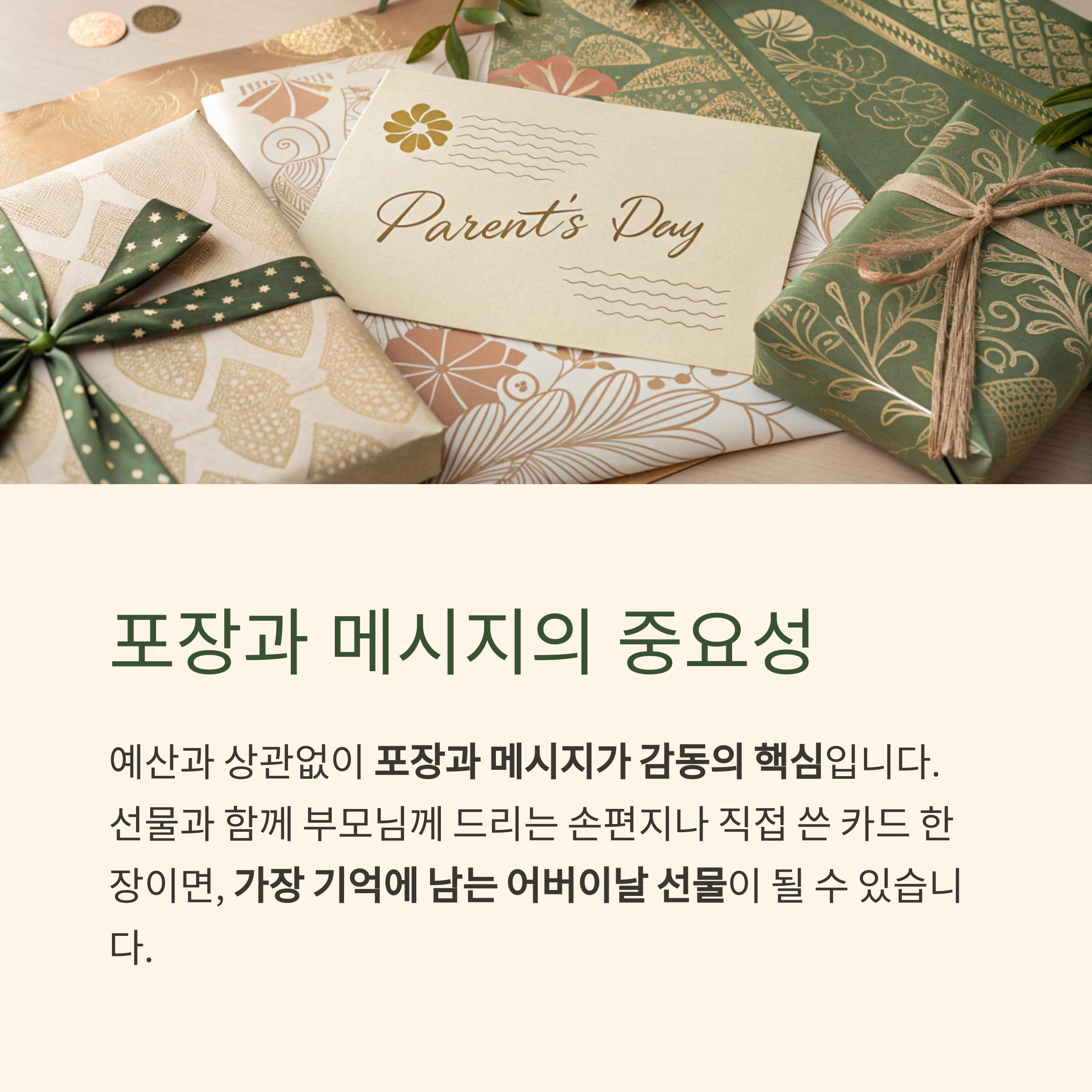 선물과 함께 부모님께 드리는 손편지나 직접 쓴 카드 한 장이면,