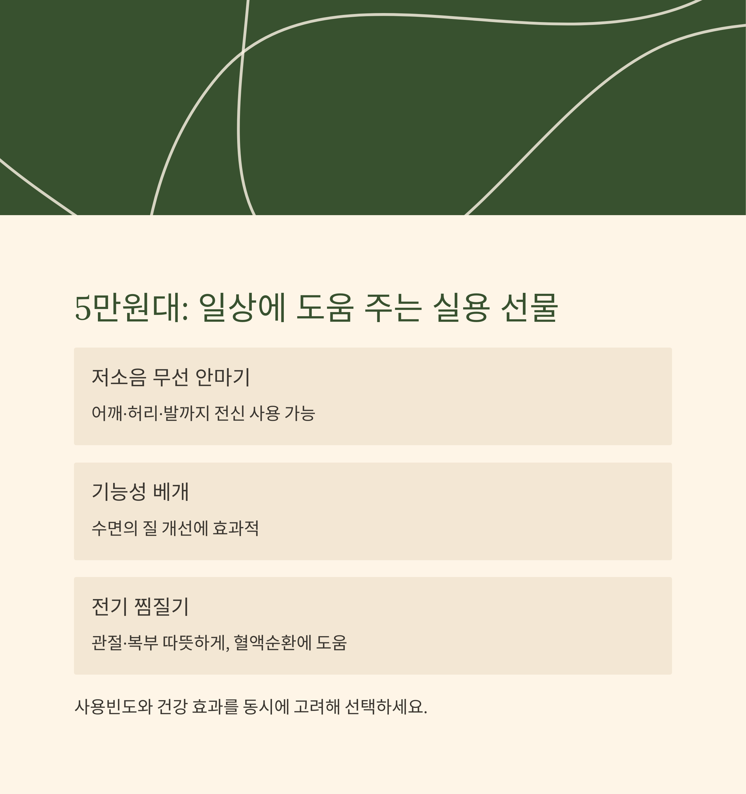 5만 원대는 부모님의 일상에 직접적으로 도움을 주는 실용 선물이 가능합니다.
