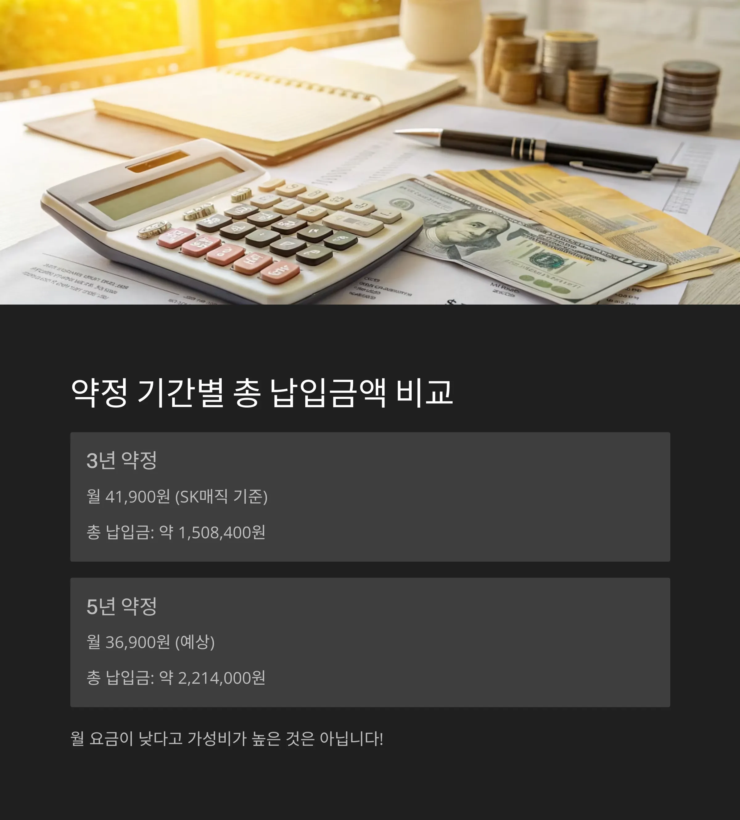 | 약정 기간 | 월 렌탈료 예시 (SK매직) | 총 납입금 |