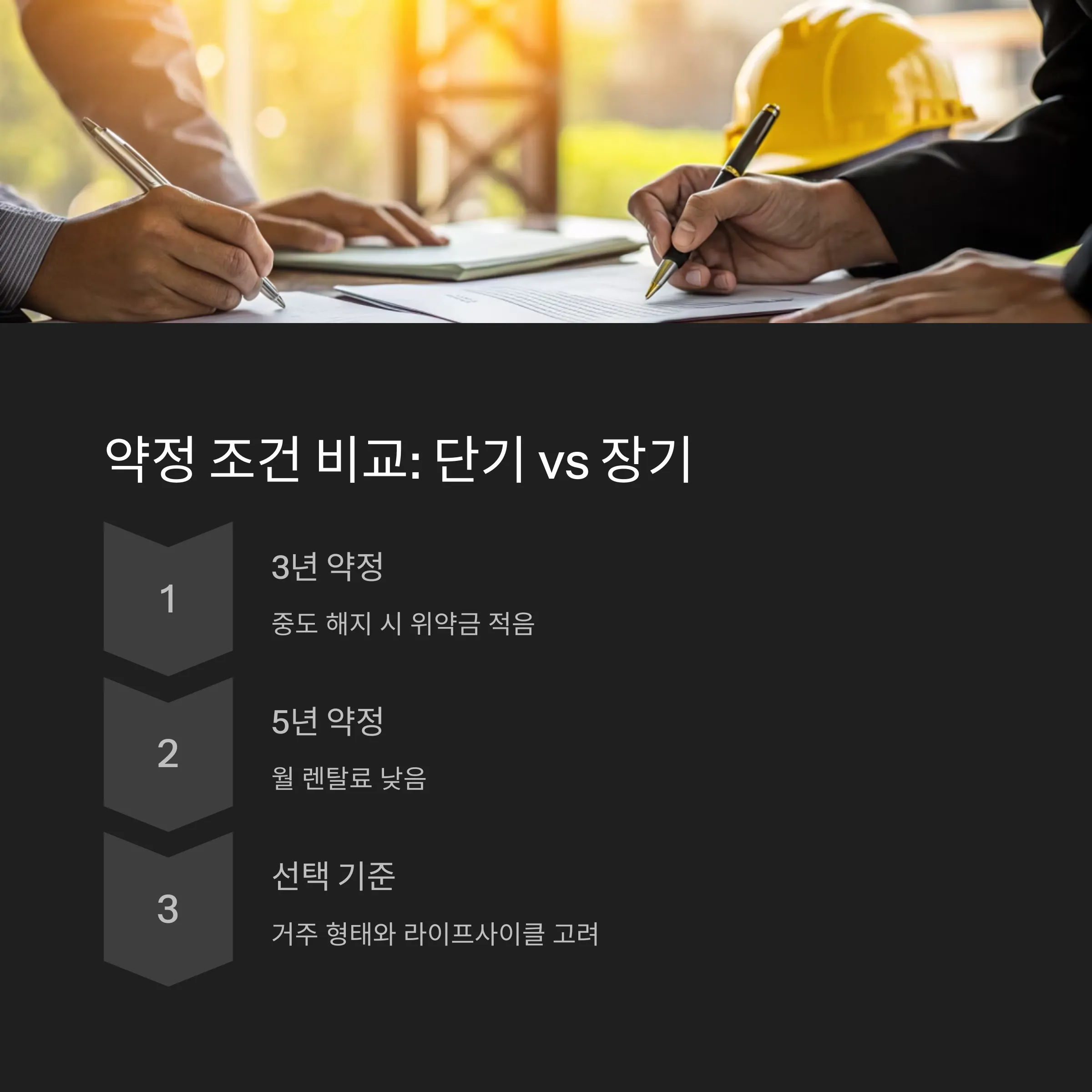 반면 5년 약정은 월 렌탈료가 낮지만, 중도 해지 시 총손해가 클 수 있습니다.