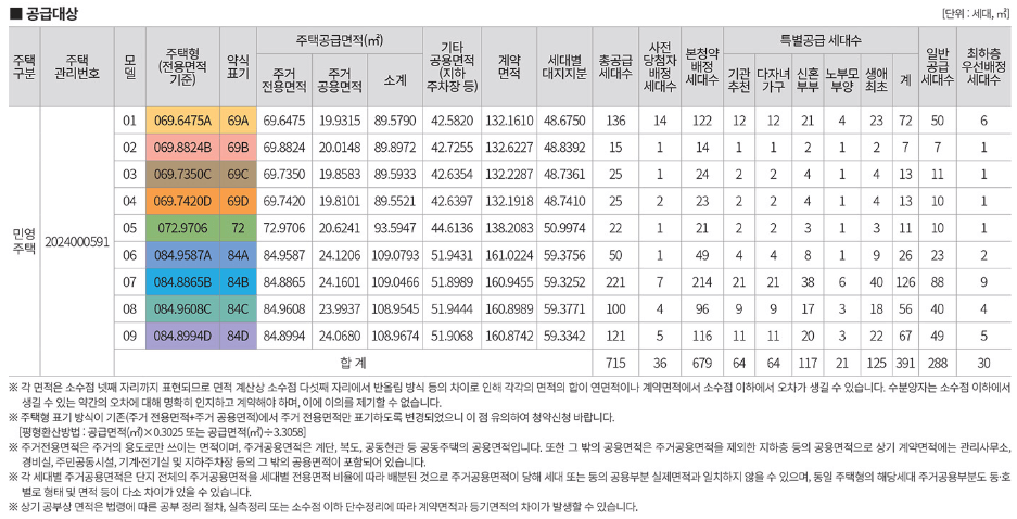 특별공급: 생애 최초 주택구입자, 다자녀 가구, 신혼부부 등 특별 자격을 갖춘 신청자에게 우선 공급됩니다.