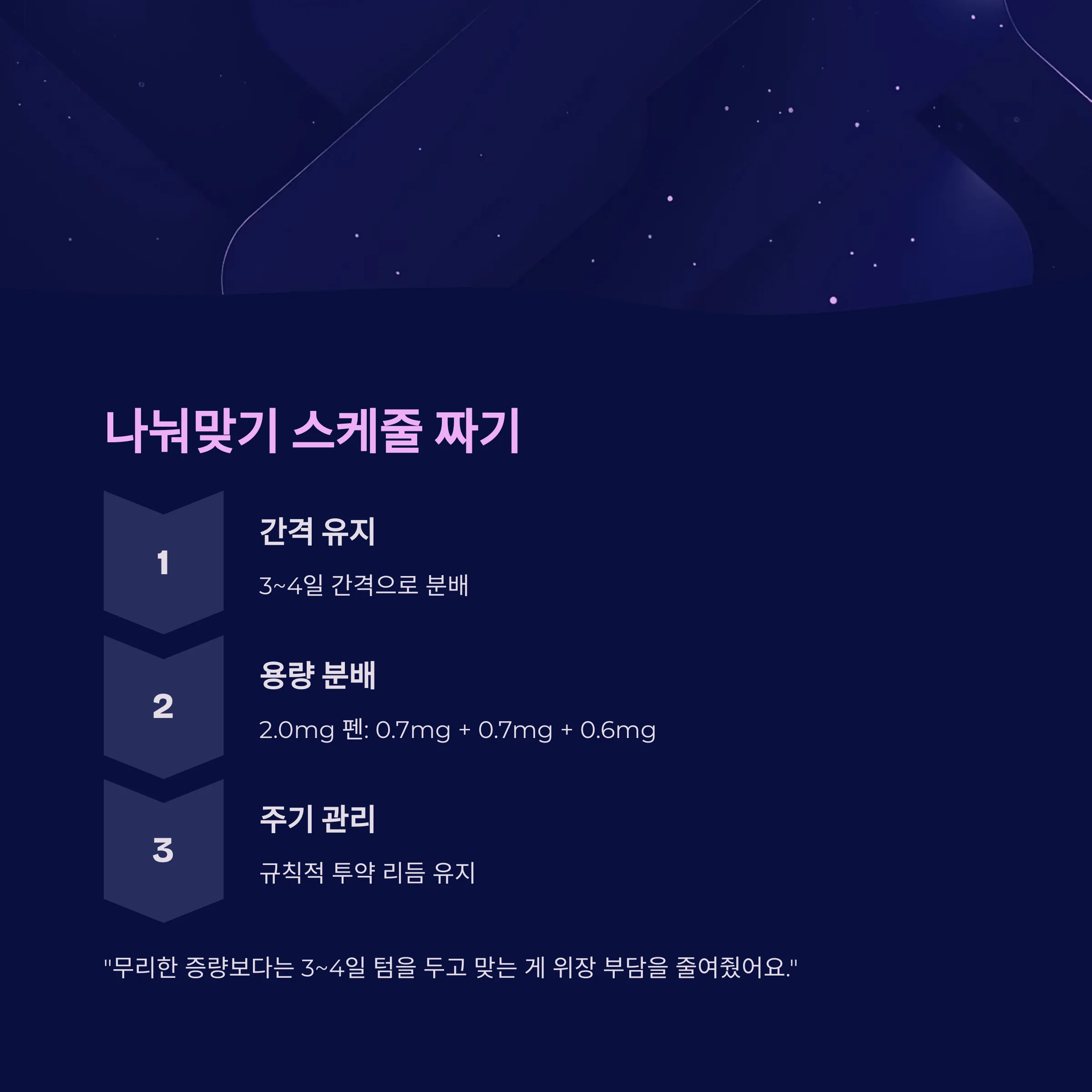 "무리한 증량보다는 3~4일 텀을 두고 맞는 게 위장 부담을 줄여줬어요."