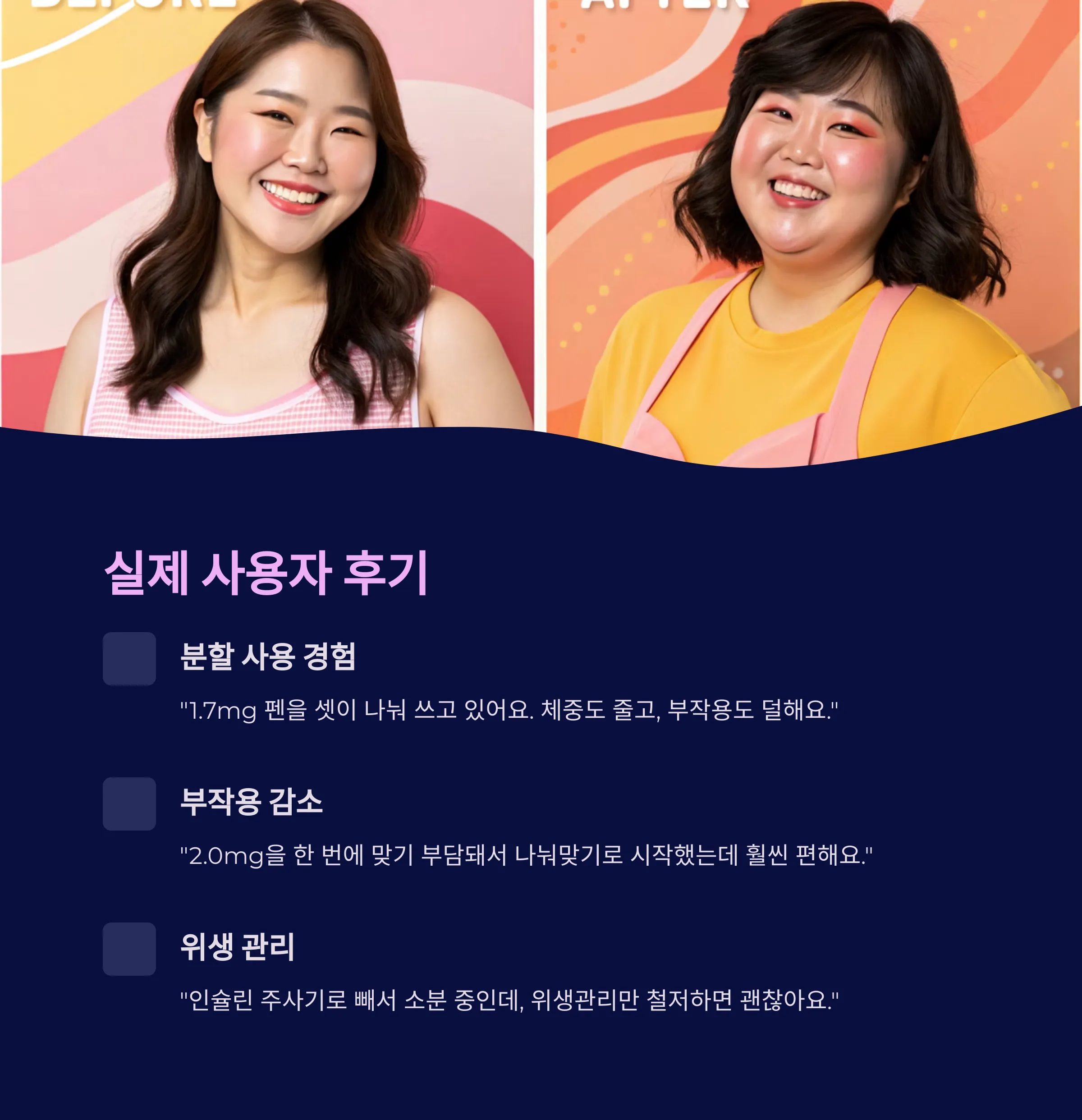 사용자마다 용량 조절, 펜 사용법, 주사 시기 분배가 복잡하게 느껴질 수 있습니다.