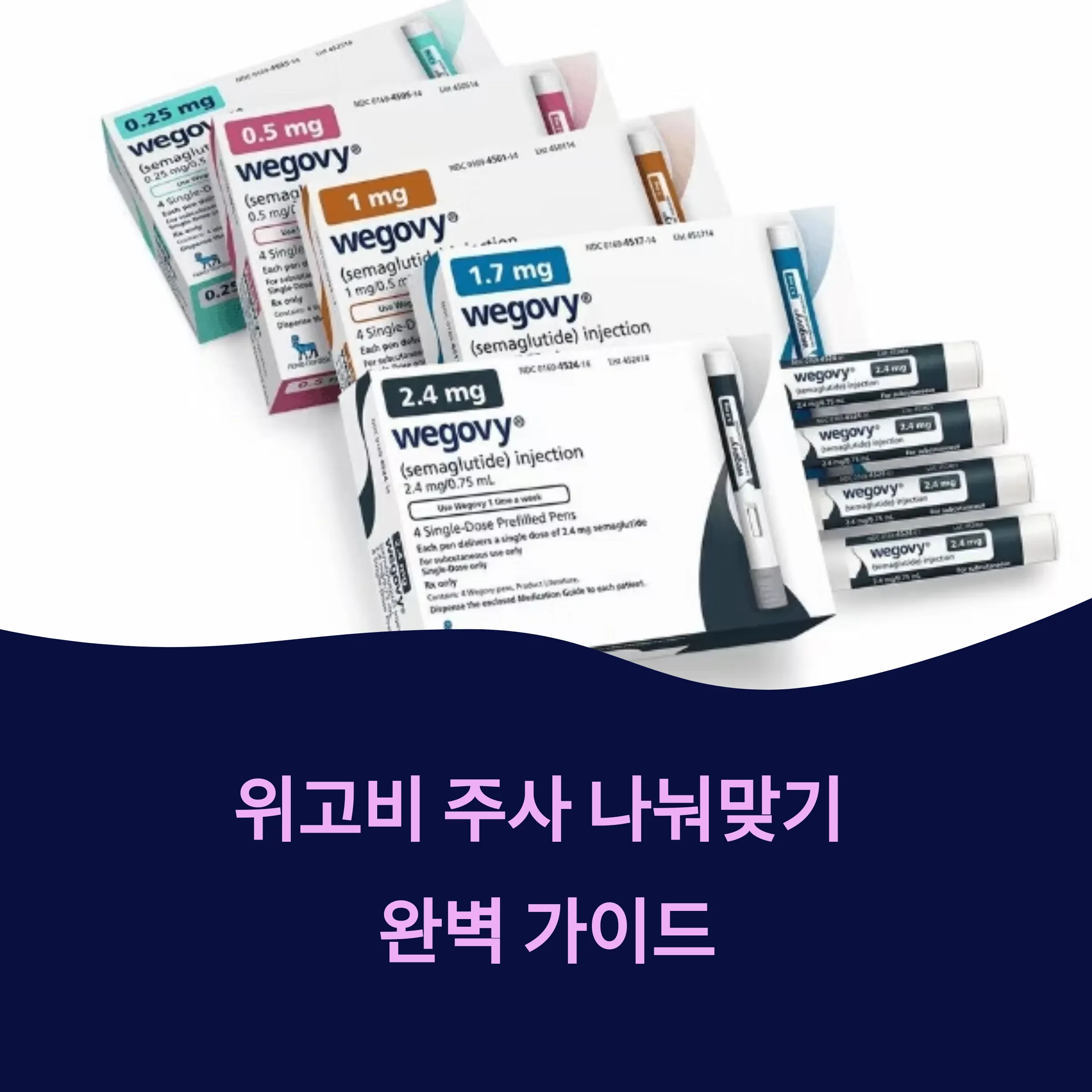 위고비 펜은 용량별로 별도 제품이 있으며, 각 펜마다 1회용 자동주사 방식입니다.