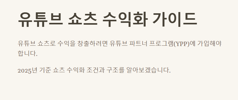 아래는 2025년 기준으로 쇼츠 수익화와 관련된 주요 조건과 수익 구조를 정리한 내용입니다.