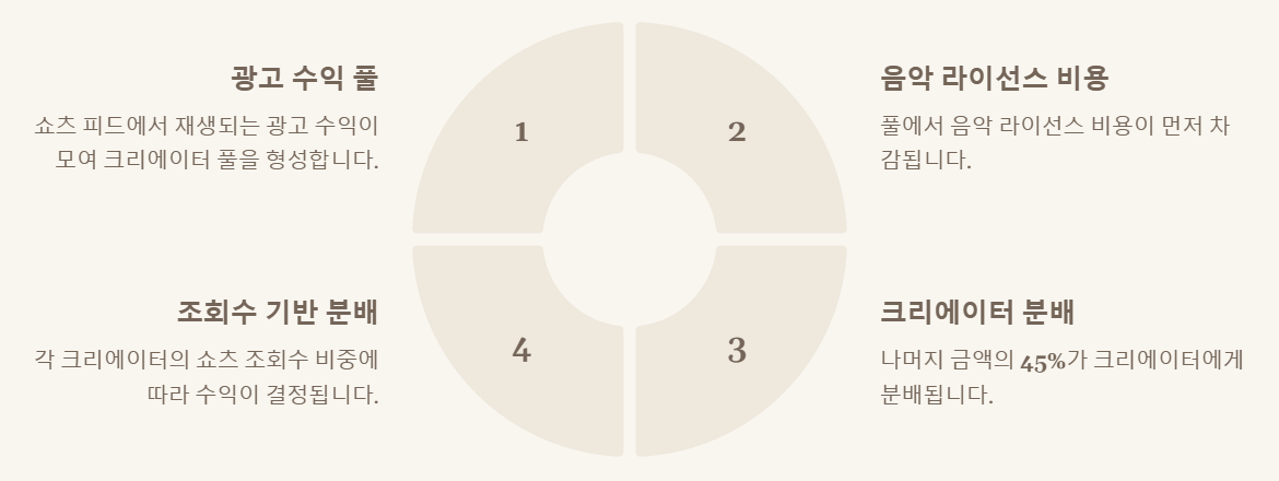 - 분배 비율은 각 크리에이터의 쇼츠 조회수 비중에 따라 결정됩니다.
