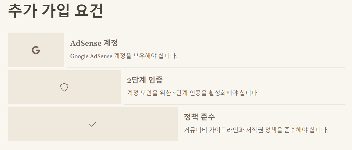 AdSense 계정, 2단계 인증, 정책 준수 등 |