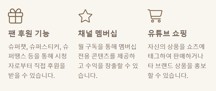 팬 후원, 채널 멤버십, 유튜브 쇼핑 등 |