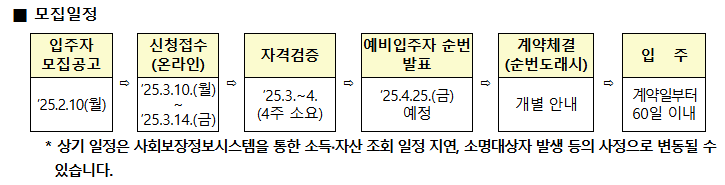 | 예비 입주자 발표 | 2025년 4월 25일 (예정) |