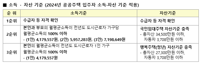 공공주택 입주자 소득 기준을 초과하면 신청이 제한됩니다.