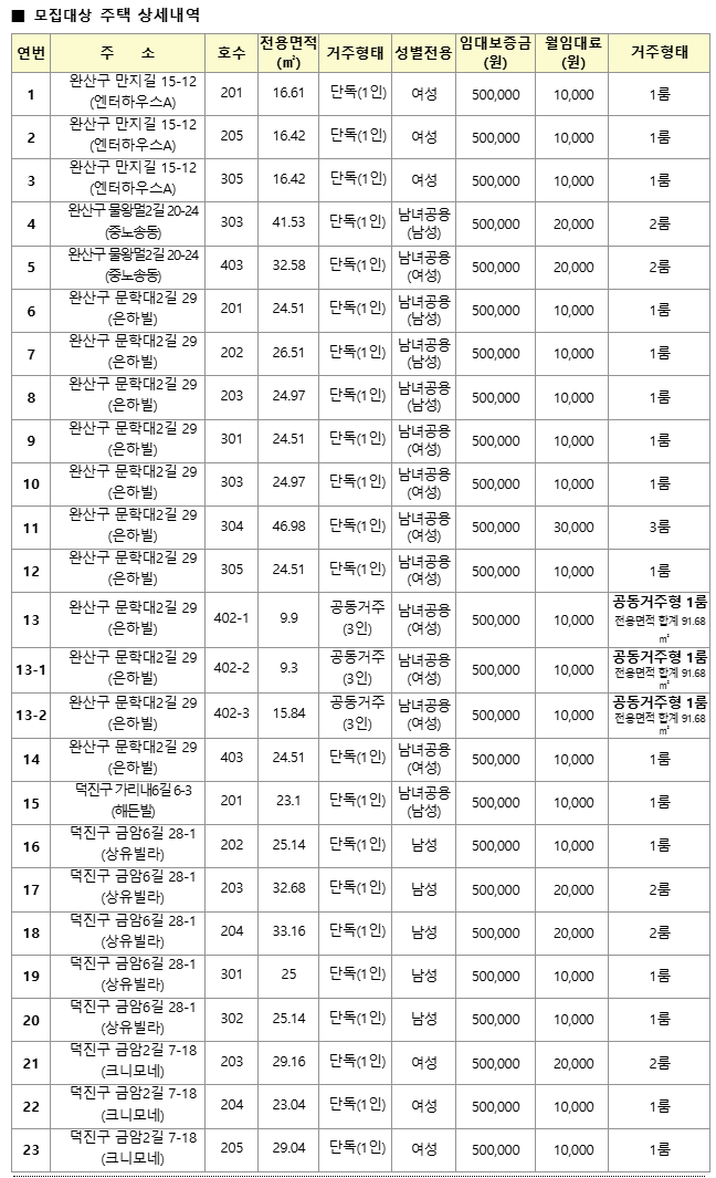 전주시에서 청년들을 위한 저렴한 임대주택 '청춘☆별채'의 입주자를 모집하고 있습니다.