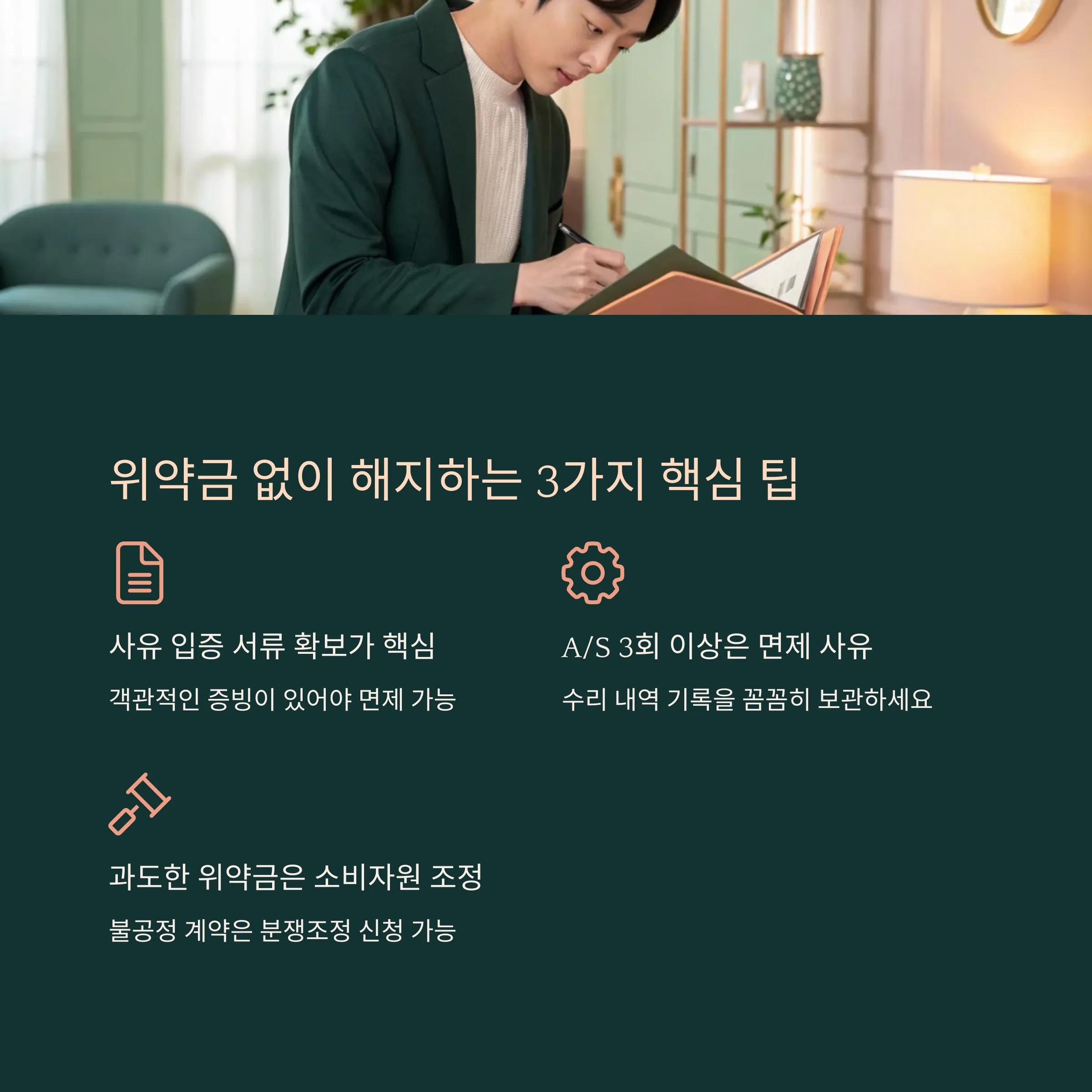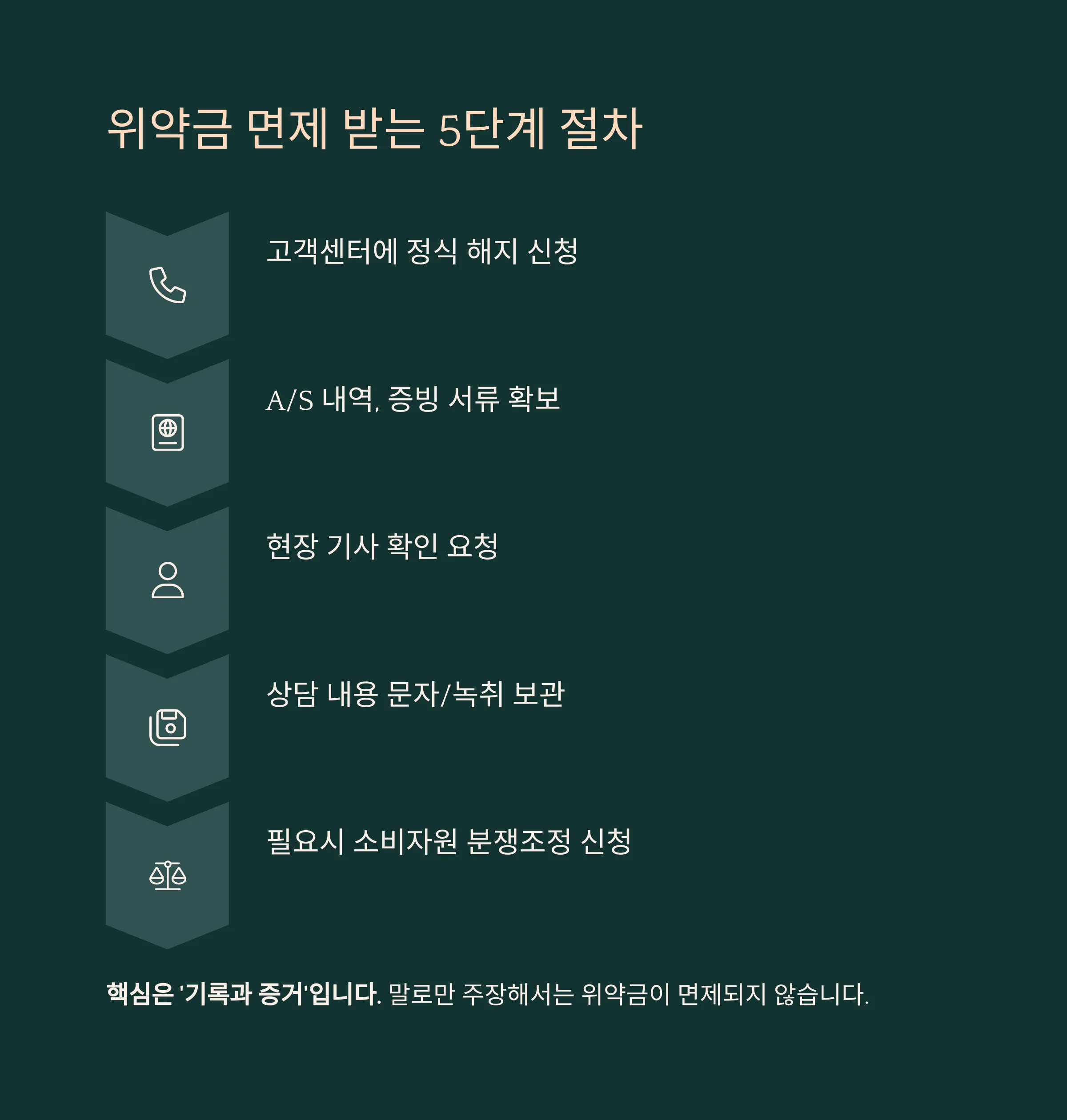핵심은 ‘기록과 증거’입니다. 말로만 주장해서는 위약금이 면제되지 않습니다.