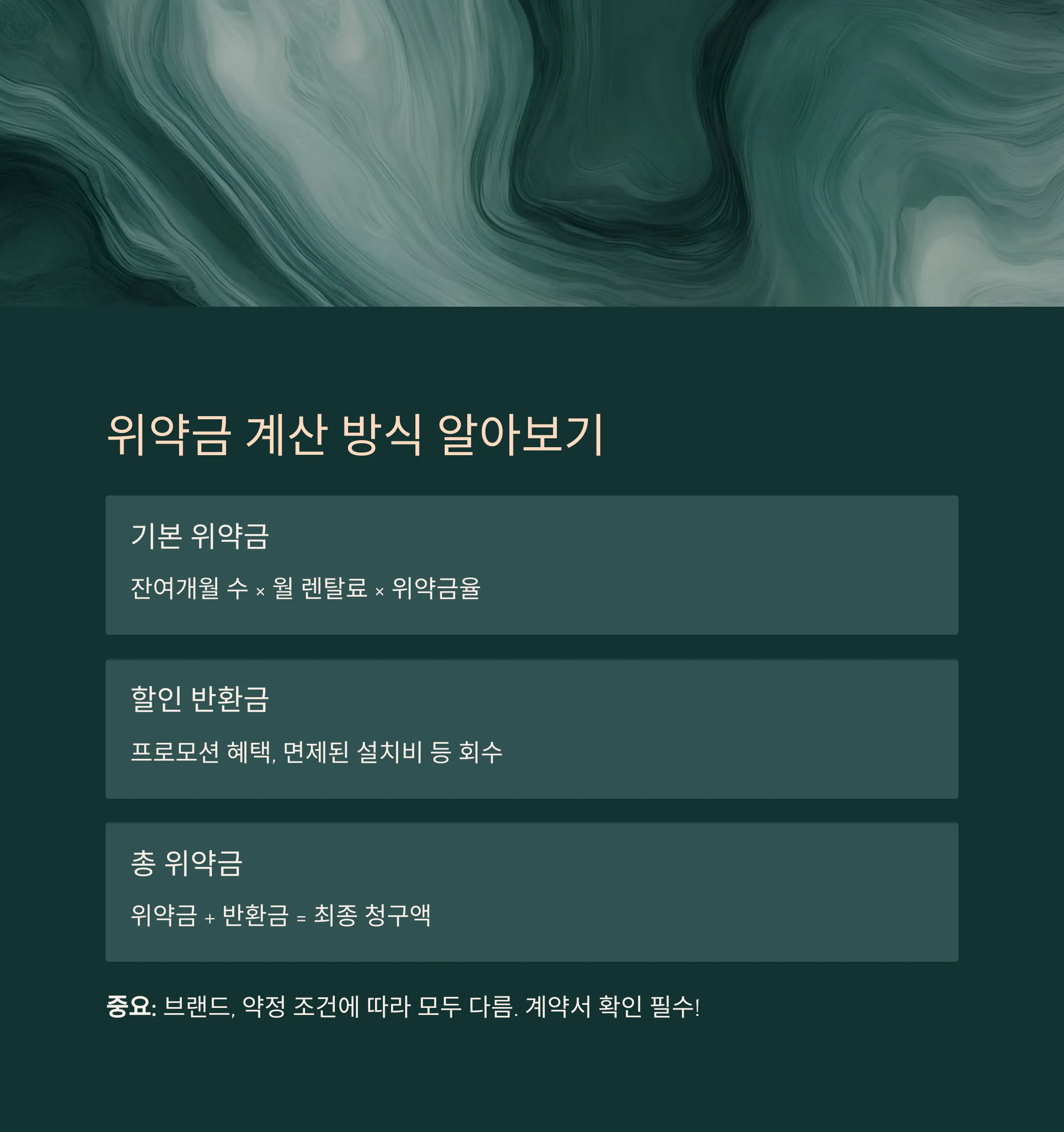 중요: 위약금은 브랜드, 약정 조건에 따라 모두 다릅니다. 반드시 계약서 확인이 필요합니다.
