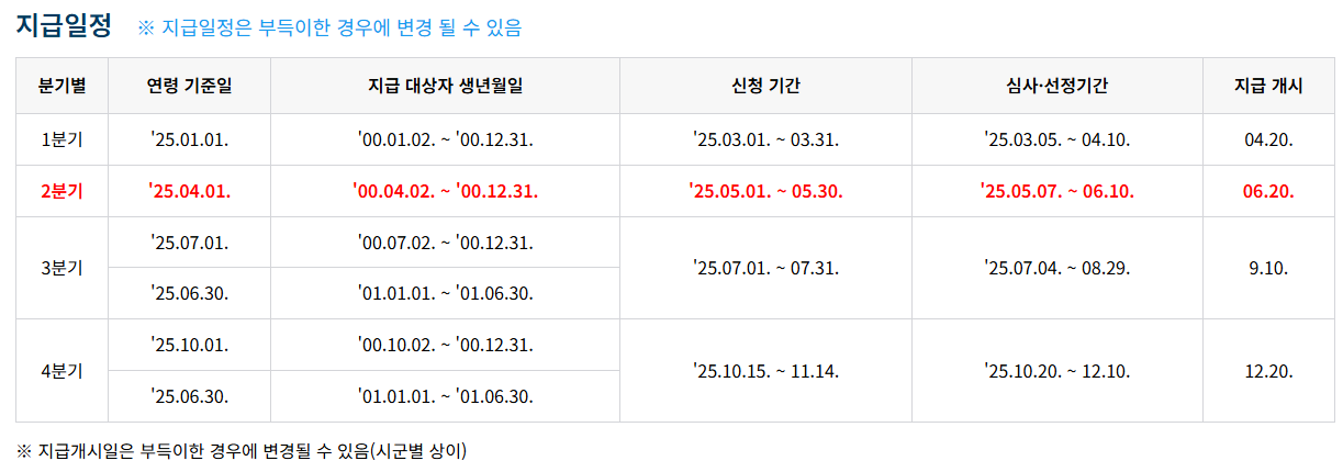 - 지급일: 2025년 6월 20일 이후 순차 지급