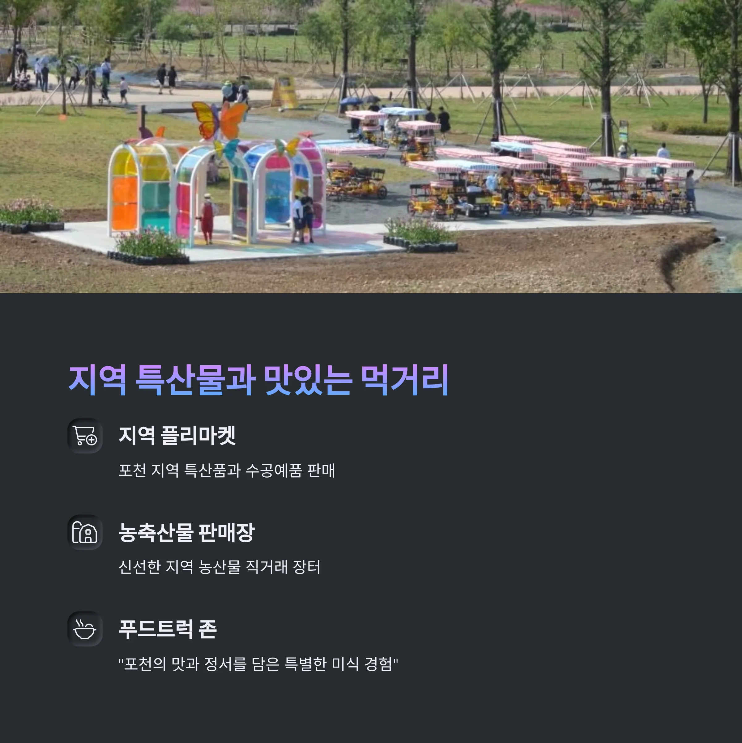 "포천의 맛과 정서를 그대로 담은 푸드존에서 특별한 미식을 경험할 수 있습니다."
