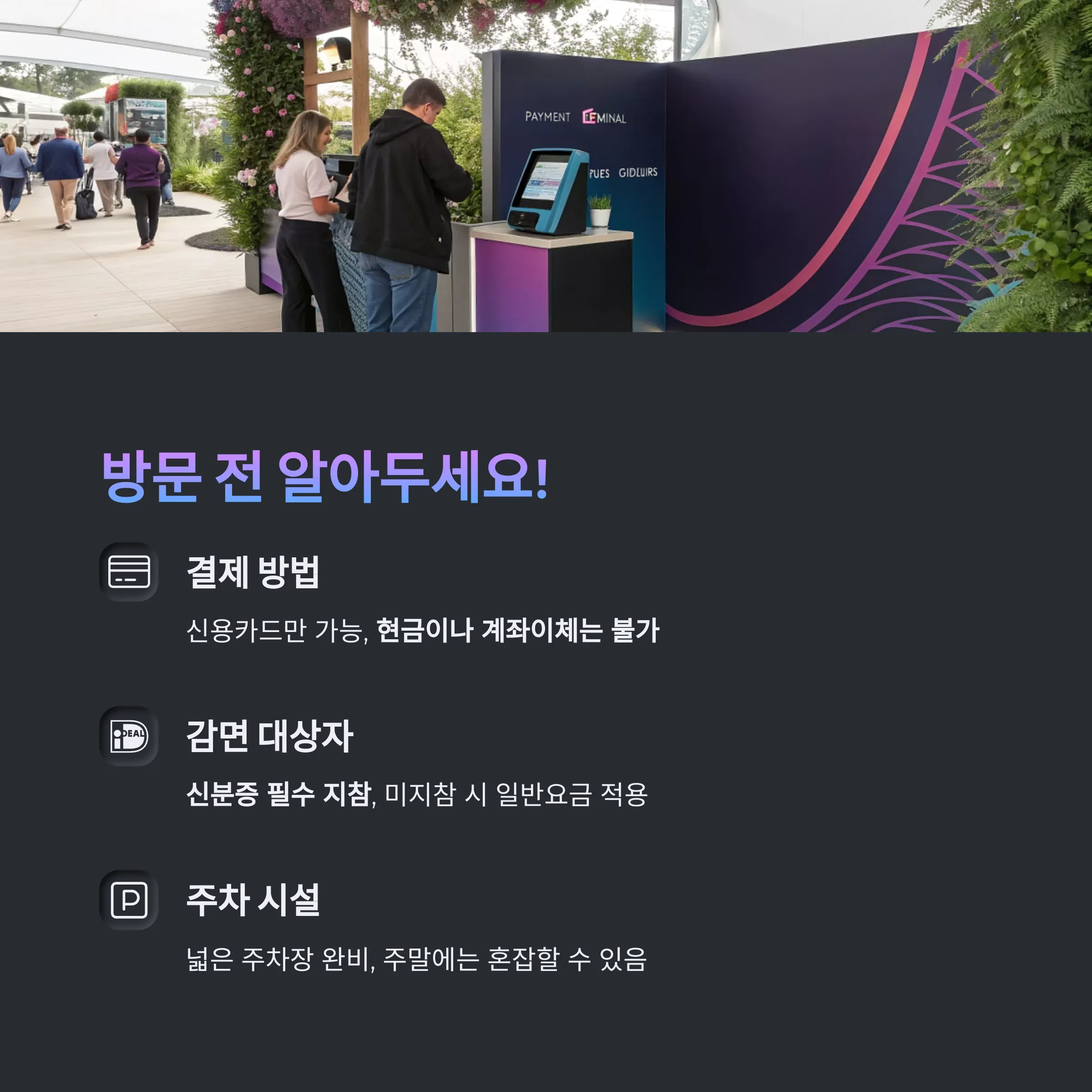 현장에서는 신용카드 결제만 가능하며, 현금이나 계좌이체는 불가합니다.