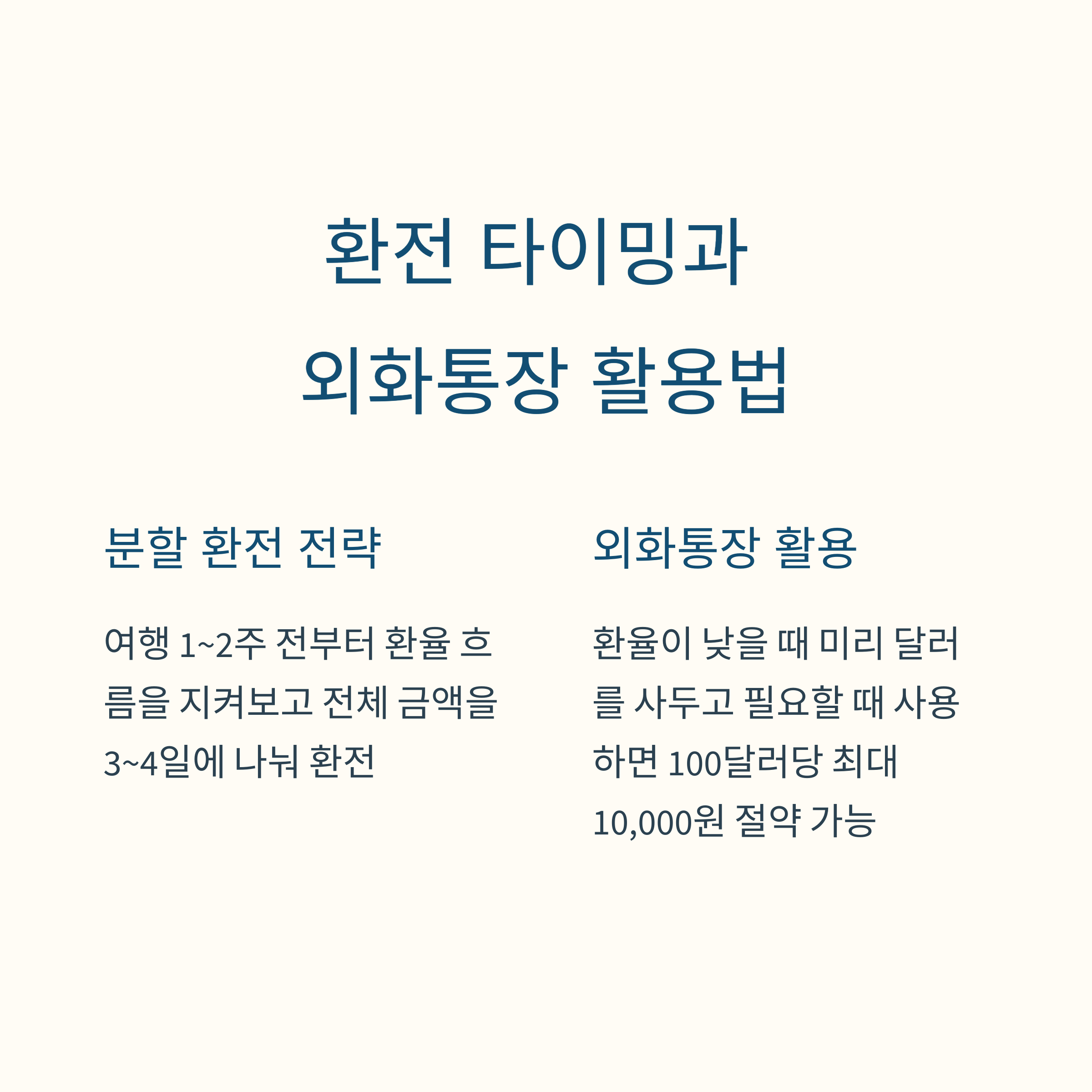 여행 1~2주 전부터 환율 흐름을 지켜보는 것이 좋습니다.