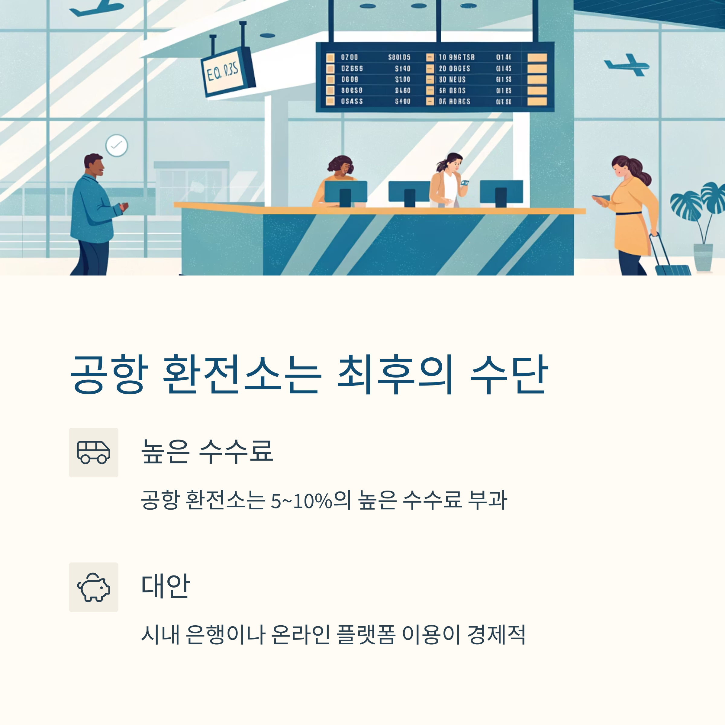 "공항 환전소는 편하지만 수수료는 가장 비쌉니다."