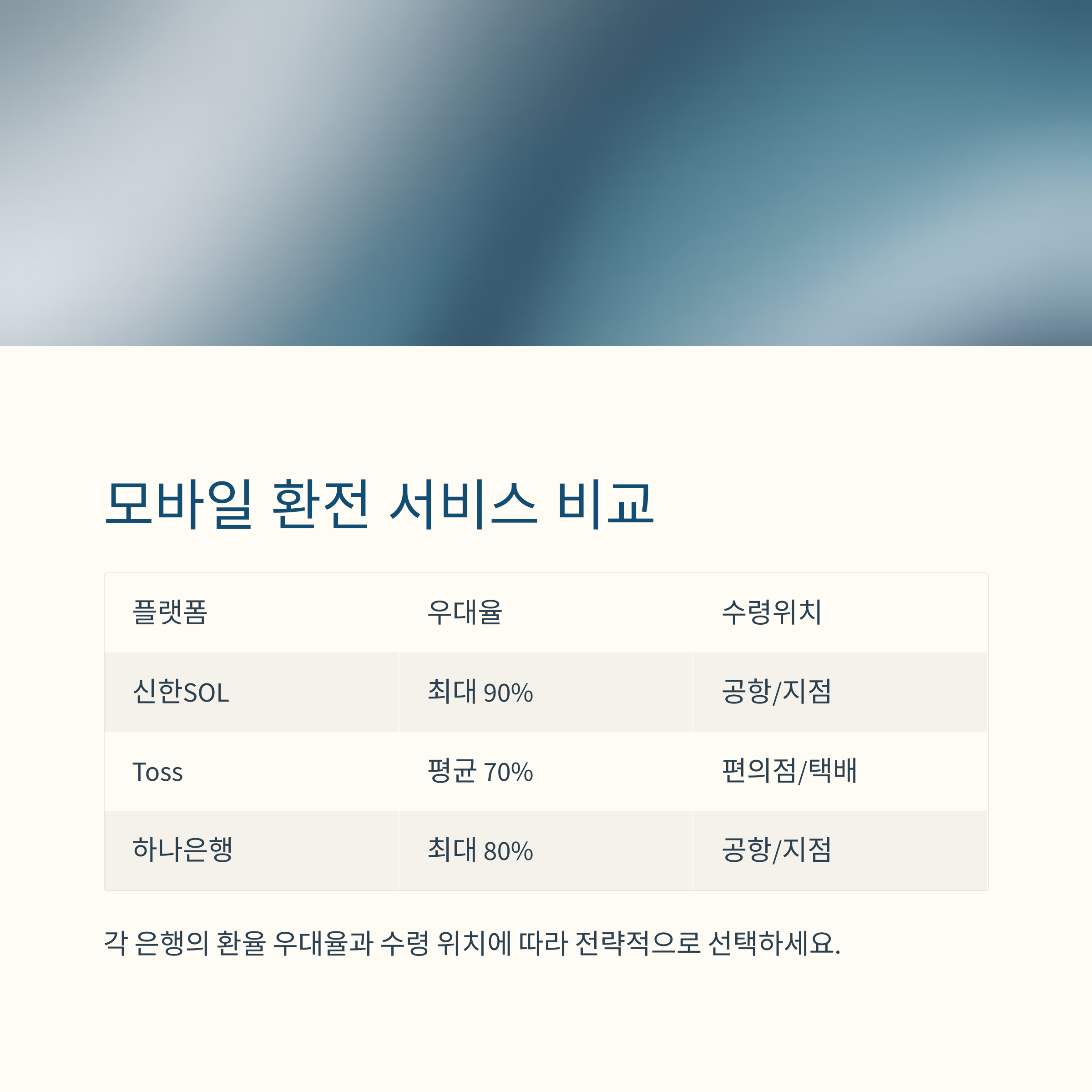 각 은행의 환율 우대율과 수령 위치에 따라 전략적으로 선택하세요.