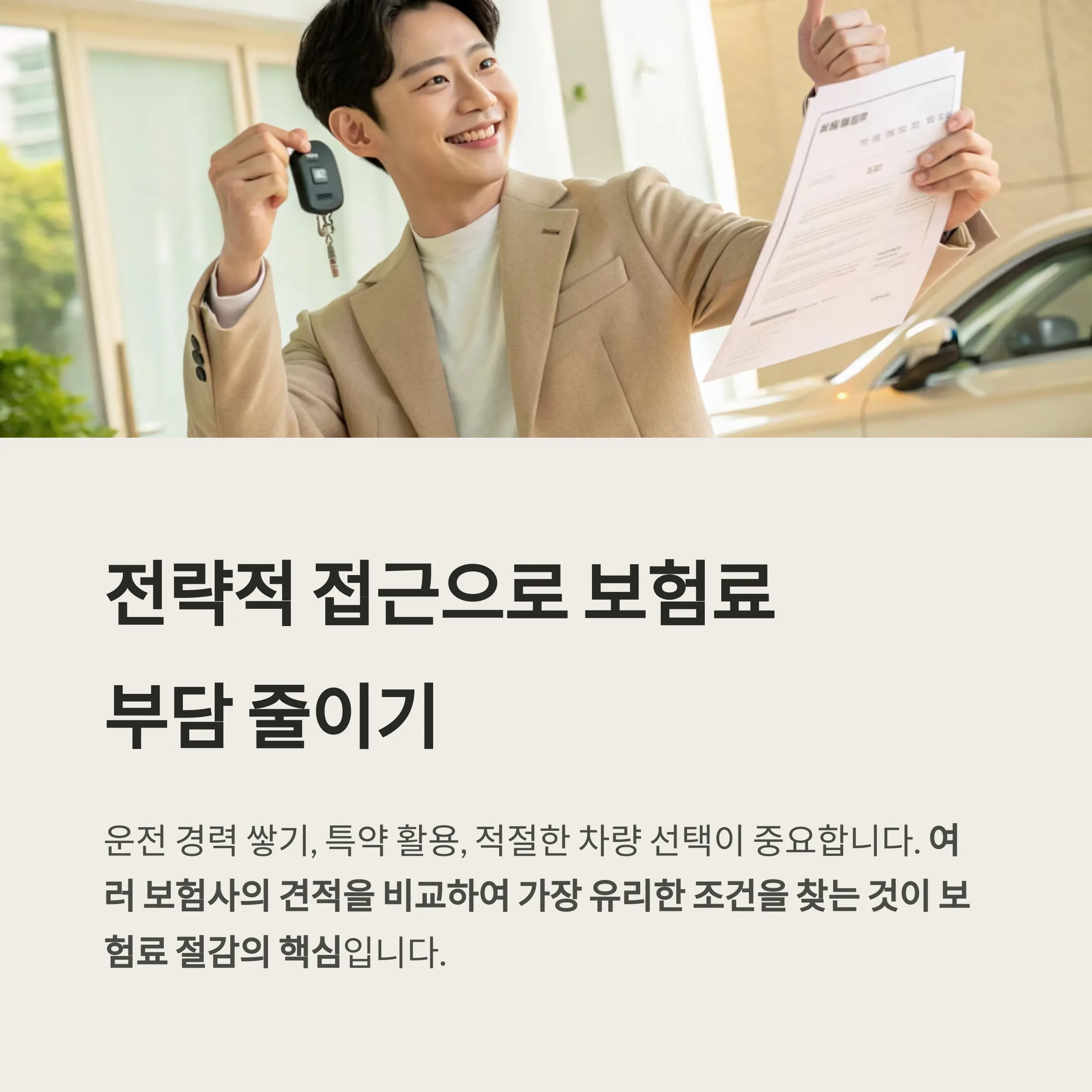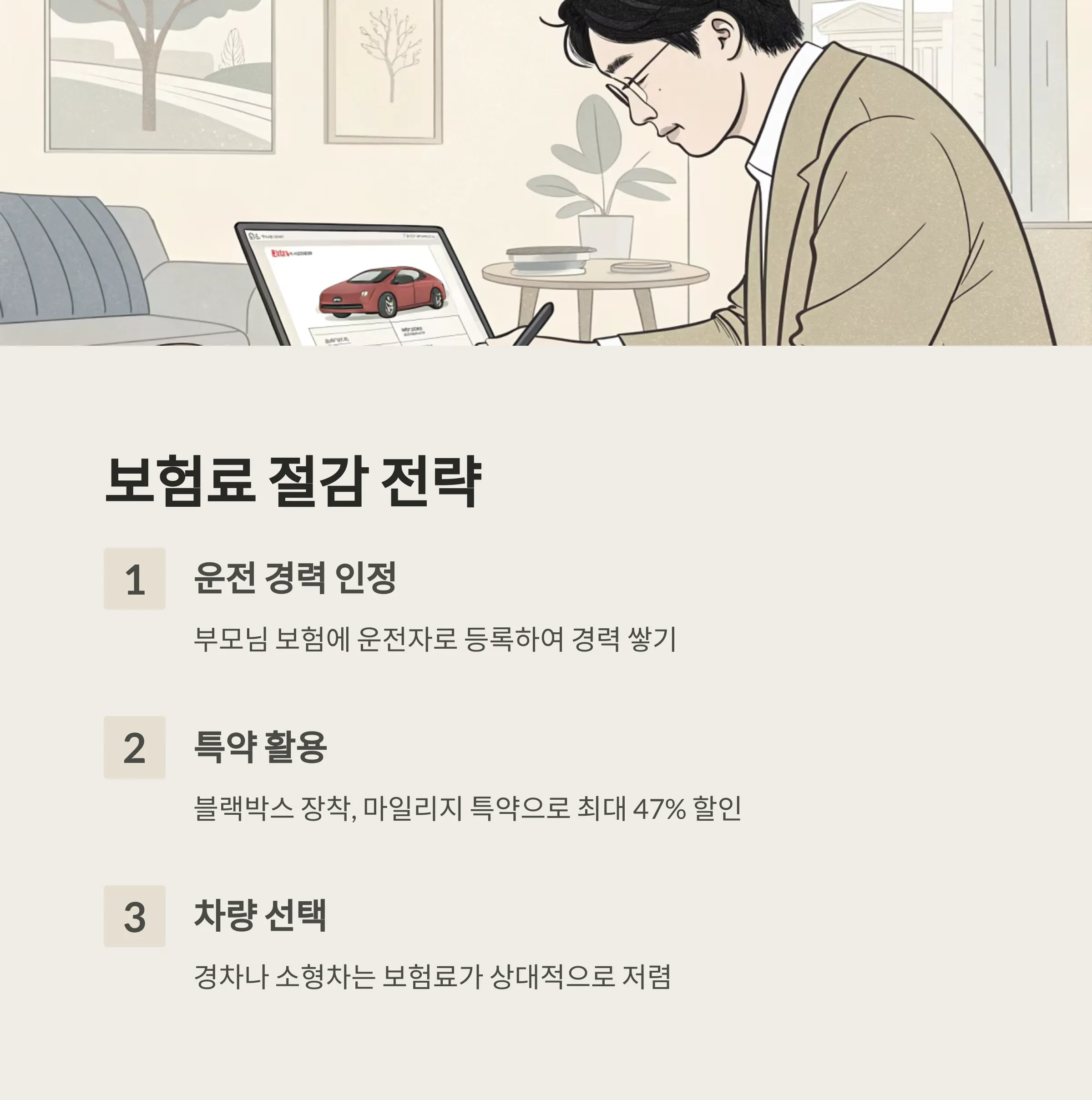 운전 경력을 쌓고, 특약을 활용하며, 적절한 차량을 선택하는 것이 중요합니다.