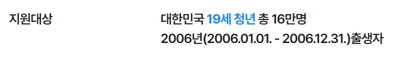 ✅ 지원 대상: 2006년생(2025년 기준 만 19세)