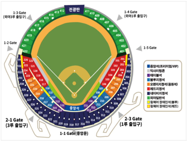 원하는 경기를 선택하고, 좌석을 선택합니다. 좌석은 일반석, VIP석 등으로 나뉘니 미리 어떤 좌석을 원하실지 정해두세요.