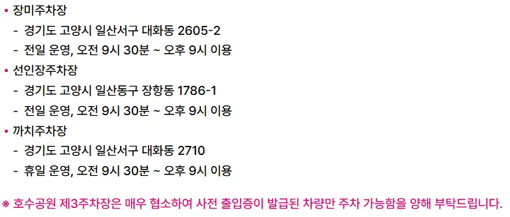각 주차장마다 셔틀버스 운행이 다르니 방문 전 공식 홈페이지 공지를 꼭 확인하세요!