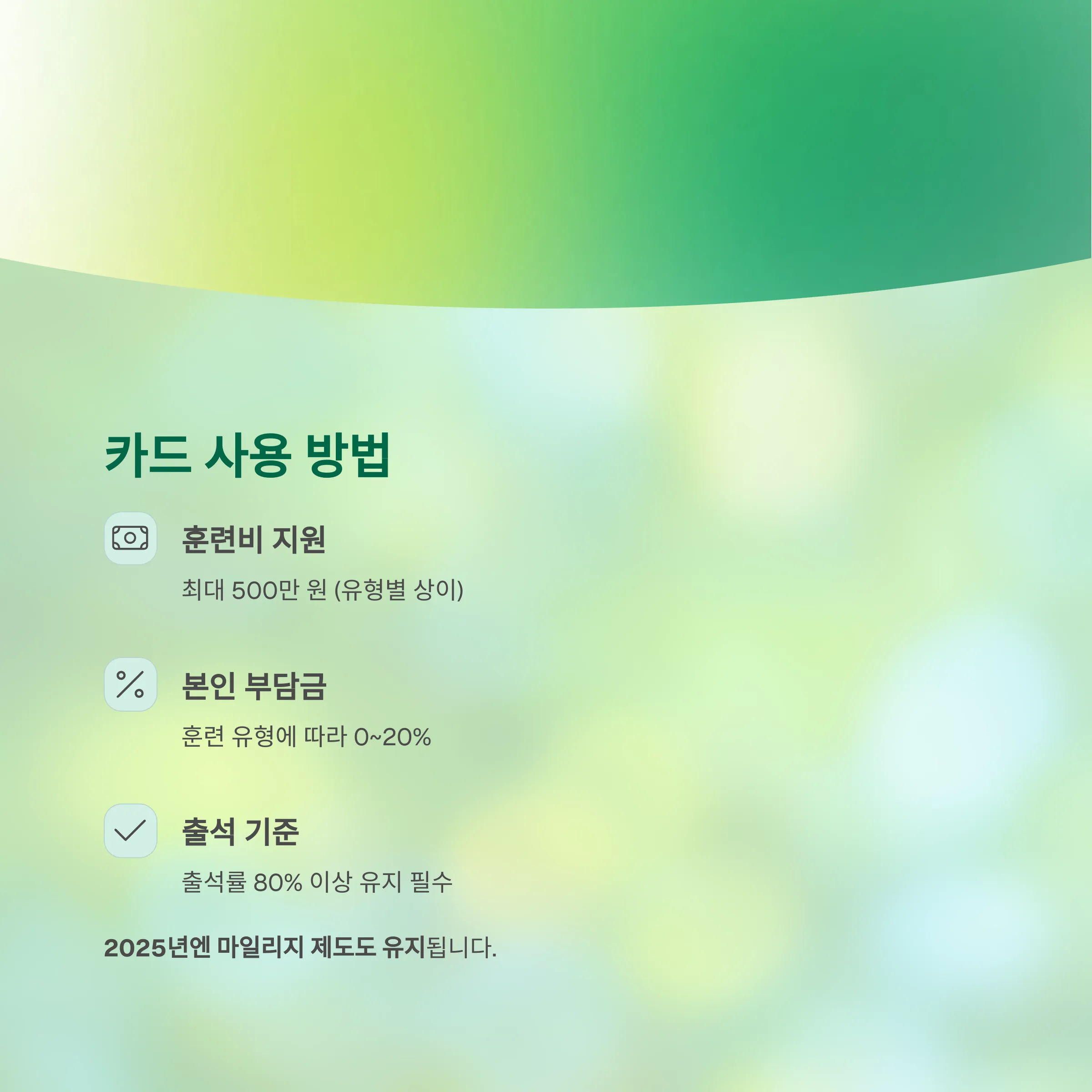 2025년엔 마일리지 제도도 유지되며, 자발적 훈련 참여 시 최대 10만 원 추가 지급됩니다.