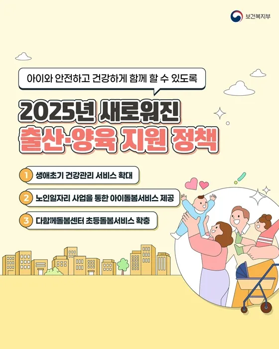 2025년부터 출산 후 산모와 아이를 위한 의료 및 건강관리 지원부터 초등학생까지의 돌봄 서비스가 더욱 확대됩니다!